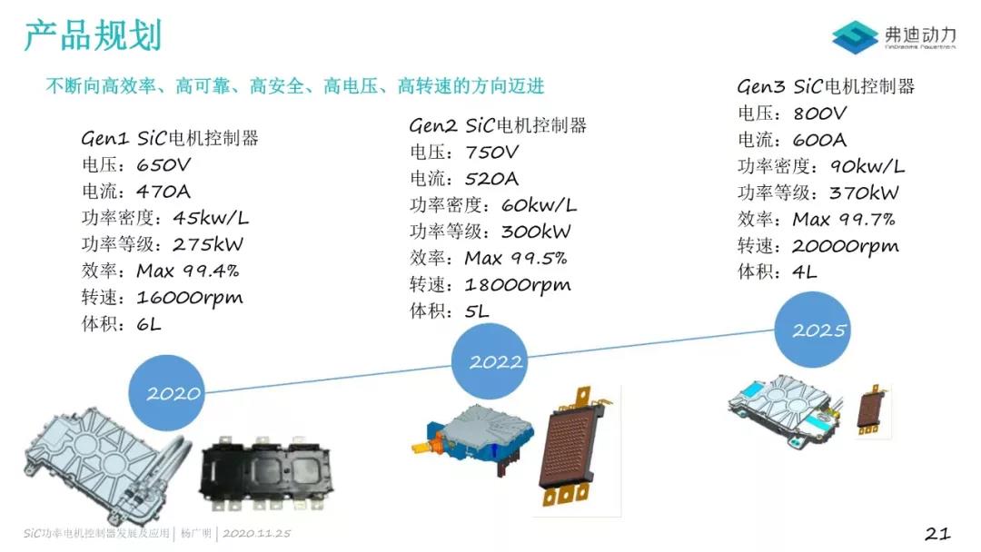 比亞迪BEV的電驅(qū)動供應(yīng)包含弗迪動力的三合一以及華為的六合一。熱銷車型匹配的動力總成如下: 元/海豚/e2等A0級轎車和SUV普遍采用功率70kW、轉(zhuǎn)速15000rpm的三合一電驅(qū)動總成,功率模塊為IGBT模塊; 秦PLUS EV等A級轎車多匹配100kW、12100rpm的三合一電驅(qū)動總成;宋PLUS EV匹配135kW、轉(zhuǎn)速15000rpm的三合一電驅(qū)動總成。 漢EV單電機版功率為163kW,轉(zhuǎn)速為15500rpm,雙電機版再增加200kW的電機。與上述動力總成不同的是,200kW的三合一采用了SiC Mosfet功率模塊。 此外,2021年10月比亞迪SOP一款宋PLUS EV,匹配華為的六合一動力總成系統(tǒng)(電機+電控+減速器+OBC+DCDC+PDU)。峰值功率123kW,轉(zhuǎn)速17600rpm。該車的量還未起來,需要時間。 蔚來ES8/ES6/EC6/ET7的系統(tǒng)供應(yīng)商皆為蔚然動力,電機、電控由蔚然動力提供,減速器來自蔚邦傳動和格特拉克。 部分EC6和ES6采用的前后電機都是160kW、15000rpm的永磁同步電機,繞組形式為扁線電機;其他EC6、ES6和ES8采用的前電機為160kW永磁電機,后電機升級為240kW的異步感應(yīng)電機。到了ET7,前電機為永磁同步電機,峰值功率180kW,轉(zhuǎn)速16000rpm,后電機為異步感應(yīng)電機,功率300kW,轉(zhuǎn)速15000rpm。 扁線、永磁+感應(yīng)電機,已經(jīng)成為蔚來動力總成的顯著特征。而且,蔚來正在為動力總成增加另一個特征:碳化硅。 ET7是蔚來搭載了碳化硅功率模塊的新一代高效電驅(qū)平臺的首發(fā)車型,接著是最近NIO DAY上發(fā)布的ET5,也將采用碳化硅電驅(qū)系統(tǒng),百公里加速僅需4.3秒。 特斯拉是前永磁后感應(yīng)電機的“鼻祖”,Model 3和Model Y配套的永磁電機功率覆蓋180kW到220kW,感應(yīng)電機只有一款,峰值功率137kW。 除了電驅(qū)動系統(tǒng)變動不大以外,特斯拉一直堅持使用SiC MOSFET功率器件。2018年特斯拉發(fā)布的Model 3開始采用ST的SIC MOSFET逆變器;到2020年推出的Model Y據(jù)Munro & Associates拆解分析,后輪驅(qū)動的動力總成也采用了SiC MOSFET;今年6月的新款Model S Plaid沿用碳化硅技術(shù)。 據(jù)IDTechEx數(shù)據(jù),對比2018年Model 3逆變器和2020年Model Y第二代逆變器的估算成本,短短三年內(nèi),特拉斯的SiC逆變器成本大幅下降,其成本幾乎與2019款日產(chǎn)聆風和捷豹I-PACE 的硅基IGBT模塊相當。
