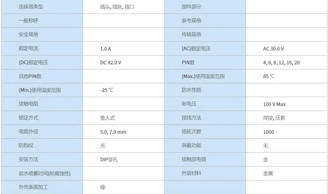 特點 1 超小級高密度圓形連接器 2 具有良好操作性的推拉鎖 3 EMI對策設(shè)計 4 支持Cat.5e(1Gbps)高速以太網(wǎng)※ 5 豐富的選型 ※傳輸性能可根據(jù)線纜?引腳尺寸?結(jié)線方法而改變, 線束后確認實力。