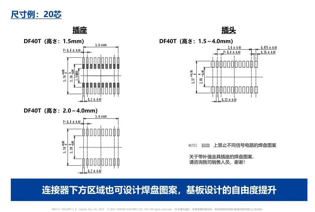 01 DF40系列 選型? 02 尺寸&選型 ? 03 車載應(yīng)用使用事例 ? 04 連接示意圖 ? 05 支持PCI Express 4.0 (16Gbps) 傳輸 ? 06 檢查用連接器 ? 07 推薦基板圖案 ? 08 規(guī)格 ? 如果應(yīng)用需要高度可靠性,例如汽車,請聯(lián)系公司代表以獲取更多信息。