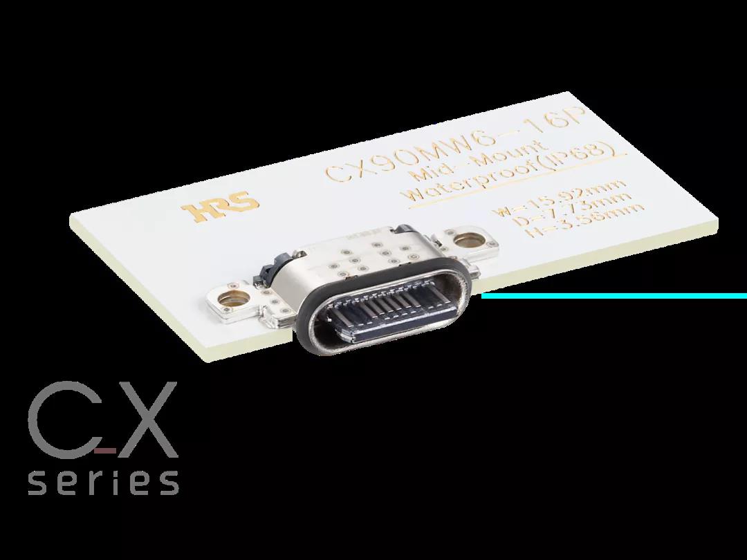 1廣瀨電機(jī)為Type-C連接器CX系列開發(fā)出了一種新插座,本次發(fā)布的是支持IPX4防水的板上式16芯 “CX90BW-16P”。